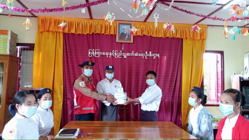 ယင်းသို့ လှူဒါန်းရာတွင် မြို့နယ်ကြက်ခြေနီအသင်းခွဲဥက္ကဋ္ဌ ဦးတိုးလှ၊ ကြက်ခြေနီတပ်ဖွဲ့မှူး ဦးနိုင်မင်းထွန်း နှင့် တပ်ဖွဲ့ဝင်များက မြို့နယ်ပြည်သူ့စာကြည့်တိုက်တွင် အသုံးပြုရန်အတွက် နှာခေါင်း စည်း ၁၀၀ ခု နှင့် Hang Gel (၅၀၀) မီလီလီတာတစ်ဗူး ကိုပေးအပ်လှူဒါန်းရာ ပြန်ကြားရေးနှင့်ပြည်သူ့ ဆက်ဆံရေးဦးစီးဌာန မြို့နယ် ဦးစီးမှူး ဦးမျိုးညွန့်ရွှေက လက်ခံ ခဲ့ကြောင်းသိရသည်။