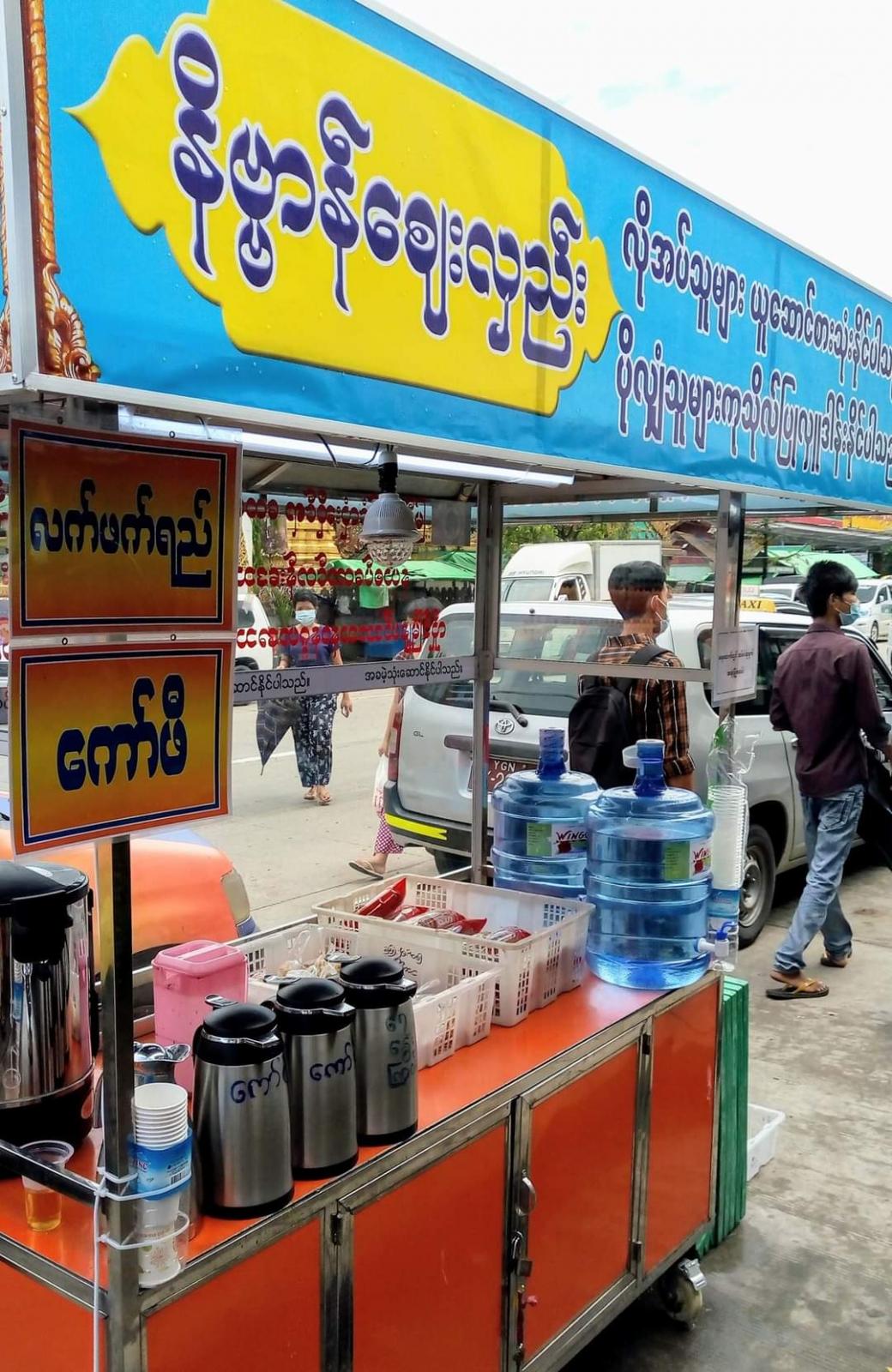 အဆိုပါ လှည်းအား နံနက်၇ နာရီမှည ၉နာရီအထိ လှူဒါန်းထားရှိပေးပြီး နေ့စဉ် လှူဒါန်းမှုများအား ဦးမောင်မောင်ခန့်+ဒေါ်ဥမ္မာ မိသားစု၊ ဦးသိန်းစိုးမိသားစု၊ လာရောက် လှူဒါန်းကြသူများနှင့် ခေတ်မြန်မာ စတိုး မိသားစုတို့မှ နေ့စဉ်မုန့်များ ကော်ဖီများ ဖြည့်စွက် ကုသိုလ်ပြု လှူဒါန်းလျက်ရှိကြောင်း မည်သူမဆို လာရောက်စားသုံးနိုင်၊ လှူဒါန်းနိုင်ကြကြောင်း သိရသည်။