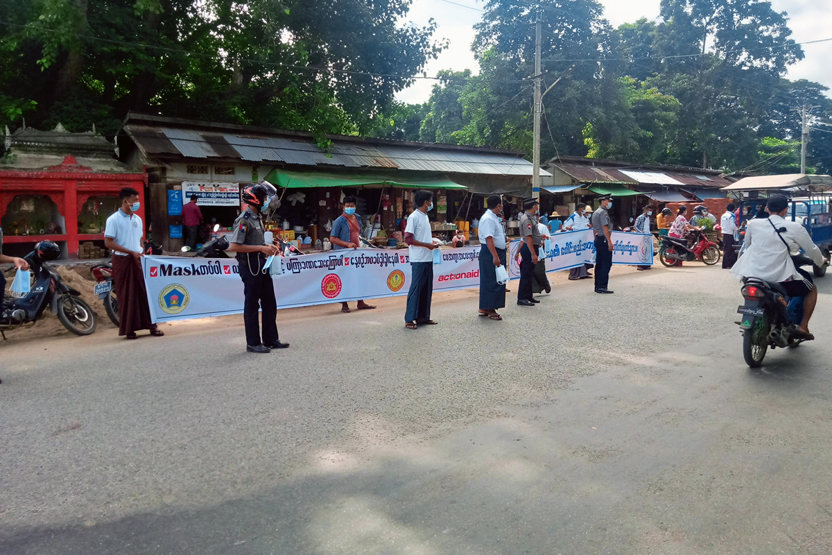 အဆိုပါ ဆောင်ရွက်မှုတွင် အထွေထွေအုပ်ချုပ်ရေးဦးစီးဌာနမှ ဒုတိယမြို့နယ်အုပ်ချုပ်ရေးမှူး ဦးမြမင်းကျော်၊ မြို့နယ်ရဲတပ်ဖွဲ့၊ ပြန်ကြားရေးနှင့်ပြည်သူ့ဆက်ဆံရေးဦးစီးဌာန၊ မြို့နယ်စည်ပင်သာယာရေးအဖွဲ့ ၊ စျေးကော်မတီဝင်များ နှင့် အောင်လံမြို့နယ်လူငယ်ရေးရာအတွင်းရေးမှူးနှင့်အဖွဲ့ဝင်များက မကွေးတိုင်းဒေသကြီး လူငယ်ရေးရာ ကော်မတီနှင့် Action aid Myanmar တို့မှပူးပေါင်းလှူဒါန်းသော Mask (၂၀၀၀)ခုနှင့် အောင်လံမြို့နယ် လူငယ်ရေးရာကော်မတီတို့မှ လှူဒါန်းသော Mask (၅၀၀)ခု စုစုပေါင်း(၂၅၀၀)ခုကို အောင်လံမြို့ Facility Quarantine Centre များအတွက် အခု(၅၀၀)နှင့် စျေးရောင်းစျေးဝယ်ပြည်သူများနှင့် လမ်းသွား လာပြည်သူများ ကိုအခုရေ(၂၀၀၀)ခုတို့အား အခမဲ့ဖြန့်ဝေ ပေးပြီး ပြန်ကြားရေးနှင့်ပြည်သူ့ဆက်ဆံရေးဦးစီးဌာန မြို့နယ်ဦးစီးမှူး ဦးမျိုးသိန်းက ကိုဗစ်−၁၉ရောဂါ ကာကွယ်ရေး အတွက် ကျန်းမာရေးနှင့်အားကစားဝန်ကြီးဌာနမှ ထုတ်ပြန်ထားသော ညွှန်ကြားချက်များကို ပြည်သူများ ကျယ်ကျယ်ပြန့်ပြန့် သိရှိနိုင်ရန် အသံချဲ့စက်ဖြင့်အသိပေး နှိုးဆော်ခဲ့ကြောင်းသိရသည်။
