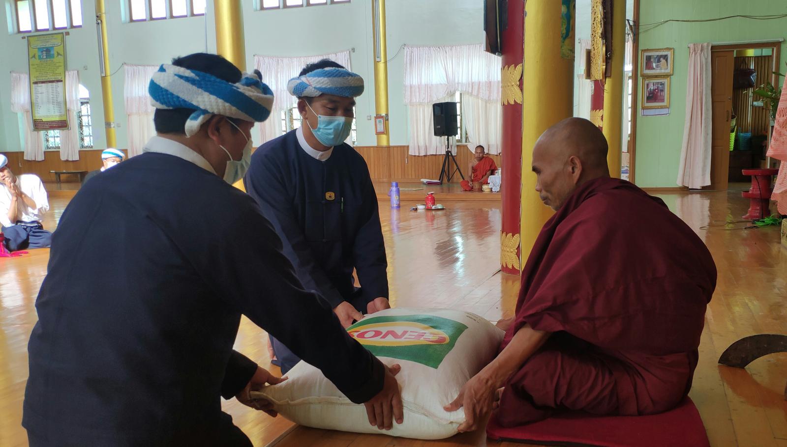 ရှမ်းပြည်နယ်တောင်ပိုင်း ပအိုဝ်းကိုယ်ပိုင်အုပ်ချုပ်ခွင့်ရဒေသ ပင်လောင်းမြို့နယ် အတွင်းရှိ ဘုန်းကြီးကျောင်းများသို့ ပအိုဝ်းကိုယ်ပိုင် အုပ်ချုပ်ခွင့်ရ ဒေသဦးစီးအဖွဲ့က စက်တင်ဘာလ ၅ ရက်နေ့တွင် ဆန်အိတ်များ သွားရောက်လှူဒါန်းခဲ့သည်။