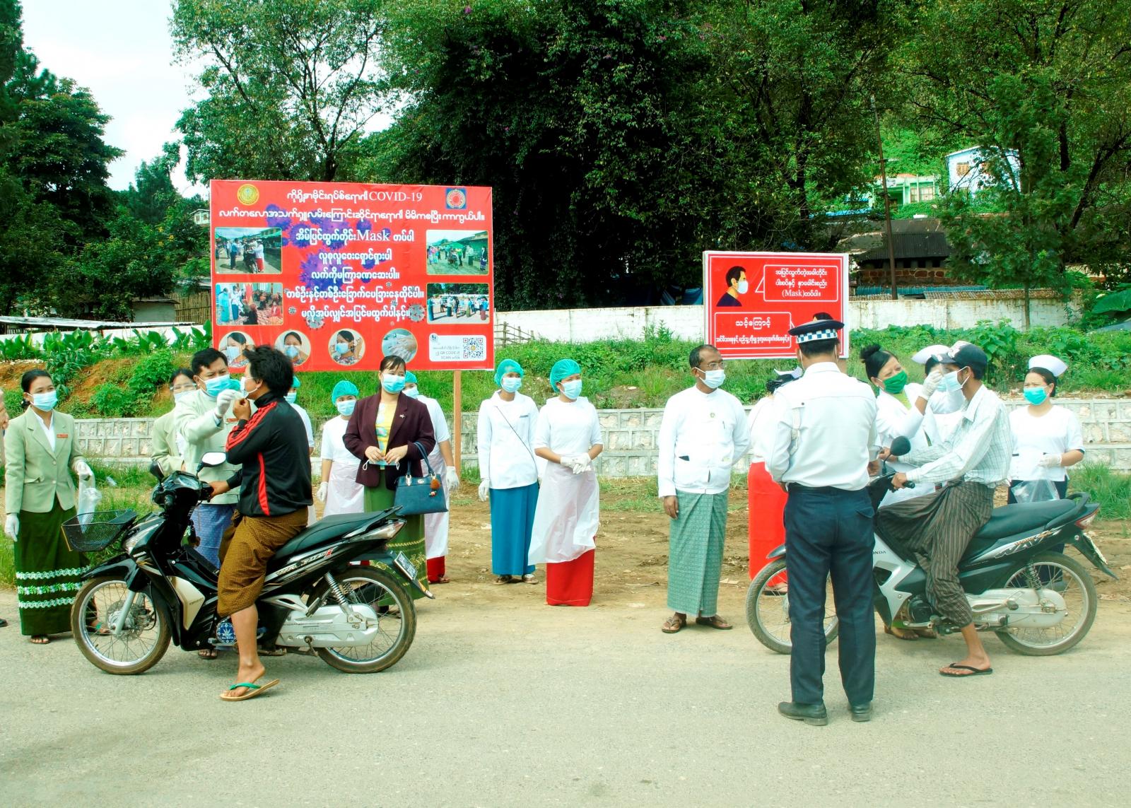 နှာခေါင်းစည်း တပ်ဆင်ရေး ကမ်ပိန်းနှင့် အသိပညာပေးလုပ်ငန်းများ ဆောင်ရွက်ရာတွင် မြို့နယ်ကိုဗစ်-၁၉ ရောဂါ ကာကွယ်၊ ထိန်းချုပ်ရေးနှင့် အရေးပေါ်တုံ့ပြန်ရေးကော်မတီဥက္ကဋ္ဌ မြို့နယ်အုပ်ချုပ်ရေးမှူး ဦးဘုန်းထက်နိုင်မြင့်၊ မြို့နယ်ကုသရေးနှင့် ပြည်သူ့ကျန်းမာရေး ဦးစီးဌာနမှူးနှင့် ဝန်ထမ်းများ၊ ဌာနဆိုင်ရာများ၊ မြို့နယ် ရဲတပ်ဖွဲ့၊ မြို့နယ်ယာဉ်ထိန်းရဲတပ်ဖွဲ့၊ မြို့နယ်မီးသတ်တပ်ဖွဲ့ဝင်များပူးပေါင်း၍ နှာခေါင်း စည်း (Mask) တပ်ဆင် ခြင်းမရှိသည့်လမ်းသွား ၊ လမ်းလာပြည်သူများအားနှာခေါင်းစည်း(Mask) တပ်ဆင်ပေးခြင်းနှင့် ယာဉ်စည်းကမ်းပိုင်းဆိုင်ရာ အသိပညာပေး လုပ်ငန်းများဆောင်ရွက်ခဲ့ကြောင်းသိရသည်။