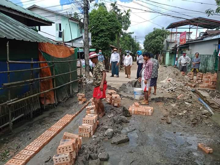 ဆက်လက်၍ တာဝန်ရှိသူများသည် တောင်သူကုန်းရပ်ကွက်၊ နိဗ္ဗာန်လမ်းမကြီးတစ်လျှောက် မတည်အလှူရှင်များ၊ လုပ်အားအလှူရှင်များ၏ ကိုယ်ထူကိုယ်ထ စုပေါင်းဆောင်ရွက်လျက်ရှိသော အုတ်ရေမြောင်း ပြုလုပ်နေသည့်လုပ်ငန်းသို့ သွားရောက်၍ ကြည့်ရှုစစ်ဆေးခဲ့ပြီး လုပ်ငန်းစဉ်များနှင့် ပတ်သက်၍ လိုအပ်သည်များကို လမ်းညွှန်မှာကြားခဲ့ကြောင်း သိရသည်။
