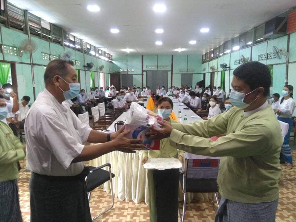 ယနေ့အချိန်ကာလတွင်ကိုဗစ်-၁၉ ကူးစက်ပျံ့နှံ့မှုသည် လျင်မြန်ပြင်းထန်လာသည်ဖြစ်၍ ပြည်သူများ နေအိမ်အပြင်သို့ မဖြစ်မနေထွက်ခွာရပါက နှာခေါင်းစည်း တပ်ဆင်ကြရန်နှင့် လတ်တလော အသက်ရှူလမ်းကြောင်းဆိုင်ရာ ရောဂါဖြစ်သည့် ကိုရိုနာဗိုင်းရပ်စ်ရောဂါ ကိုဗစ်-၁၉ ကို မိမိကစ၍ ကာကွယ်ပါ အသိပညာပေး လက်ကမ်းစာစောင်များ ဖြန့်ဝေပေး ခဲ့ကြကြောင်း သိရသည်။