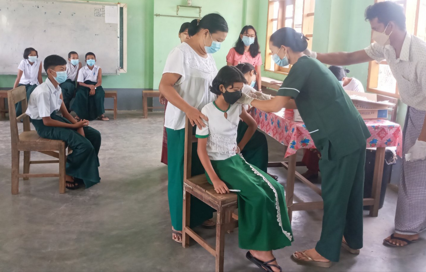 ပဲခူးတိုင်းဒေသကြီး၊ ပြည်ခရိုင်၊ ပေါက်ခေါင်းမြို့နယ်အတွင်းရှိ အခြေခံပညာအလယ်တန်း၊ မူလတန်းလွန်နှင့် မူလတန်းကျောင်းများမှ အသက် ၅ နှစ်မှ ၁၂ နှစ်အရွယ် စာသင်ကျောင်းအခြေပြု ကျောင်းသား၊ ကျောင်းသူများကို ကိုဗစ်-၁၉ ရောဂါ ကာကွယ်ဆေးကို ဇွန်လ ၂ ရက်နေ့က ပထမအကြိမ်စတင်ထိုးနှံပေးခဲ့ရာ ယခုအခါသတ်မှတ် ရက်ပြည့်မြောက်၍ ဒုတိယအကြိမ် ထိုးနှံပေးခြင်းကို သက်ဆိုင်ရာ စာသင်ကျောင်းဆေးထိုးစုရပ်များအလိုက် ကျန်းမာရေးဝန်းထမ်းများက ထိုးနှံပေးလျက်ရှိသည်။