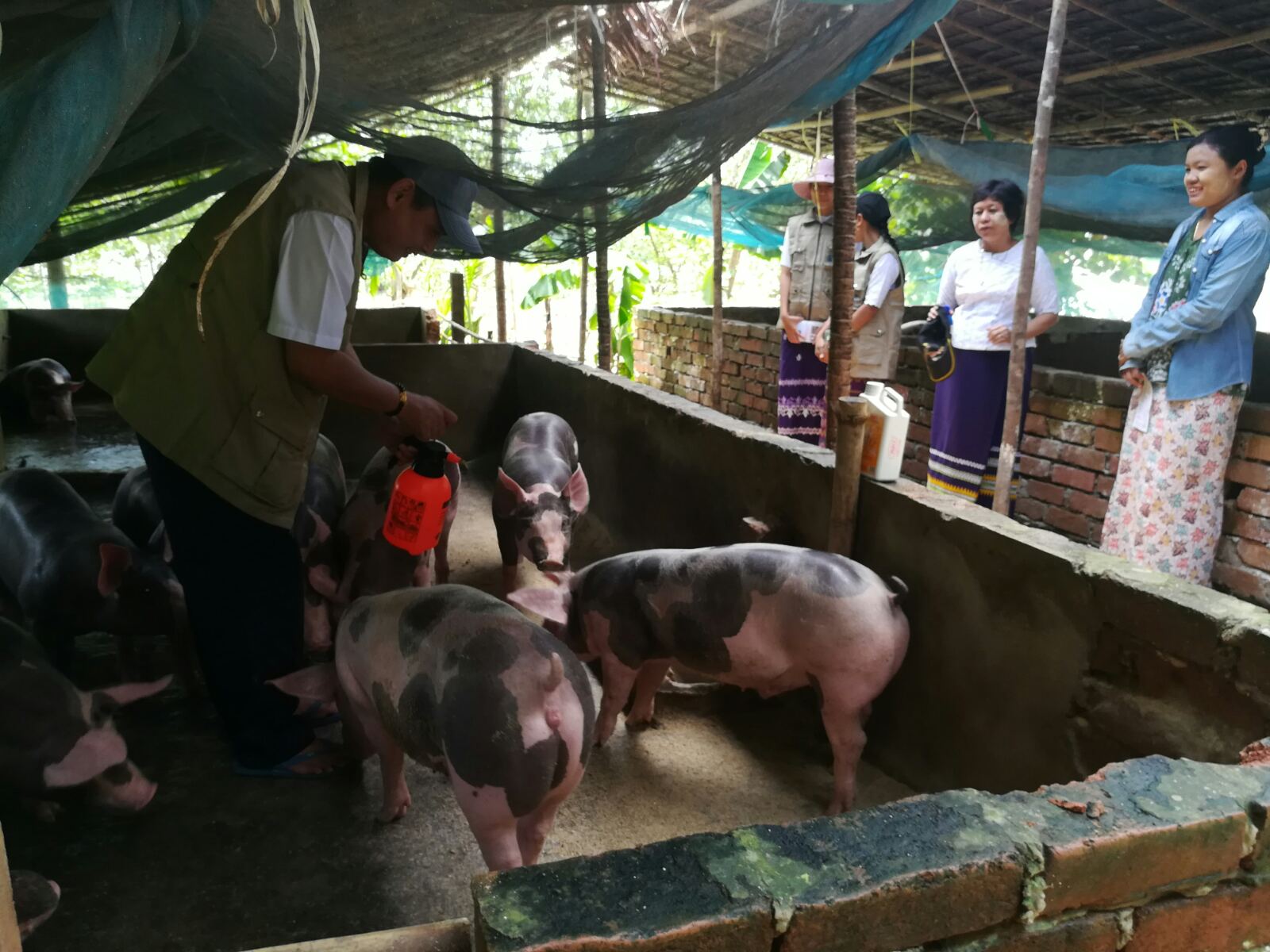 အဆိုပါ လုပ်ငန်းများဆောင်ရွက်ရာတွင် မြို့နယ်မွေးမြူရေးနှင့်ကုသရေးဦးစီးဌာန၊ မြို့နယ် စည်ပင်သာယာရေးအဖွဲ့နှင့် မြို့နယ်စားသုံးသူရေးရာဦးစီးဌာနတို့ ပူးပေါင်း၍ မြို့နယ်အတွင်းရှိ ဝက်သားအရောင်းဆိုင်များတွင် ဝက်များဝယ်ယူရာ၌ သတိပြုရှောင်ကြဉ်ရန် ကိစ္စရပ်များနှင့် သံသယရှိပါက မြို့နယ်ရုံးသို့ ဆက်သွယ်အကြောင်းကြားရန် ကိစ္စရပ်များ ရှင်းလင်းဆွေးနွေးခဲ့ပြီး ဝက်မွေးမြူရေးခြံများတွင် ကူးစက်ရောဂါကာကွယ်ရေးအတွက် မွေးမြူရေးခြံသုံး ဆေးသုံးစွဲခြင်းအား လက်တွေ့သရုပ်ပြခြင်းလုပ်ငန်းများ ဆောင်ရွက်ခြင်း၊ အသိပညာပေး လက်ကမ်းစာစောင်များ ဖြန့်ဝေ၍ ပညာပေးဆွေးနွေးခဲ့ကြောင်း သိရသည်။