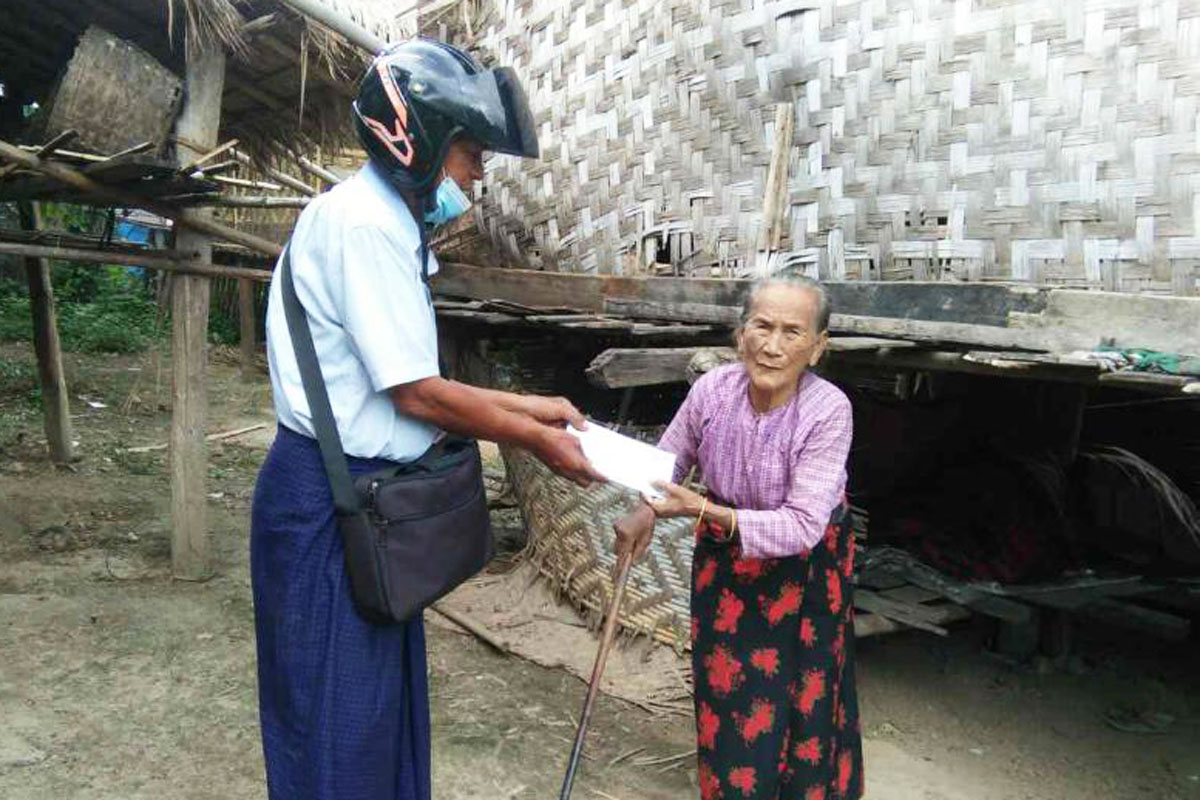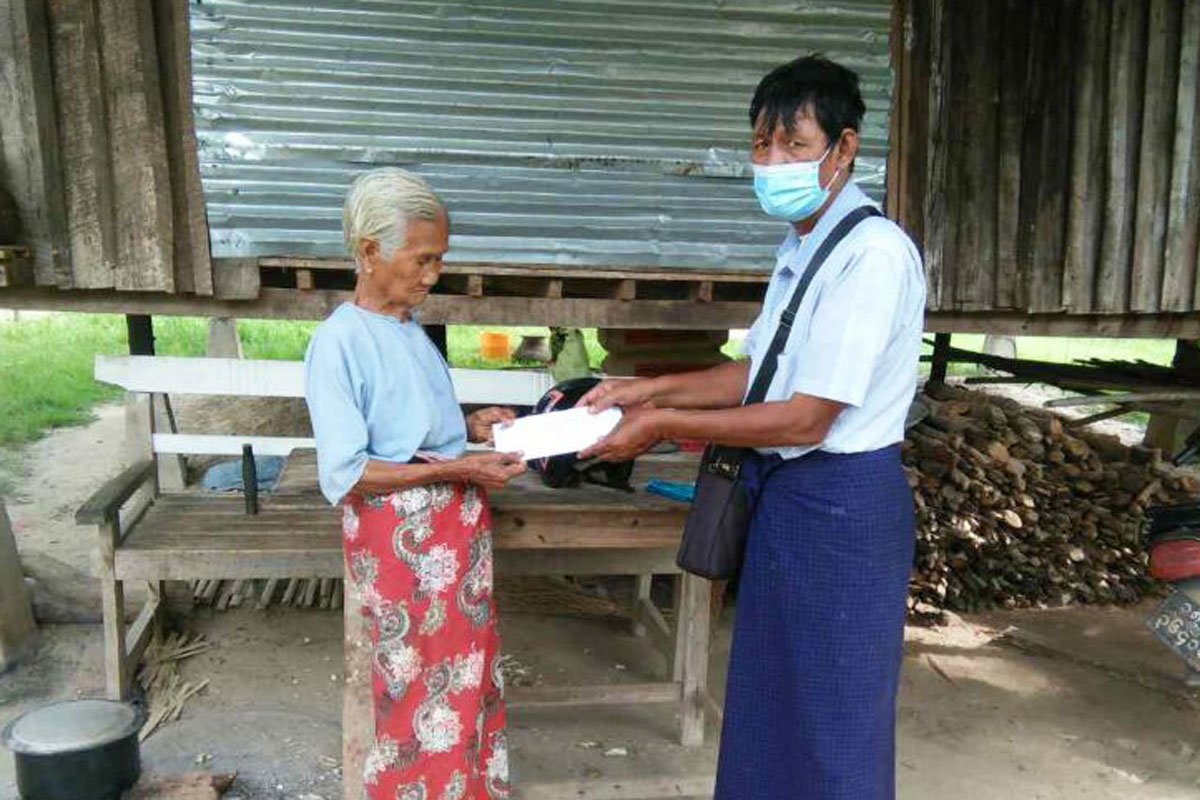 အဆိုပါ ထောက်ပံ့ငွေများပေးအပ်ခြင်းကို လူမှုဝန်ထမ်း၊ကယ်ဆယ်ရေးနှင့်ပြန်လည်နေရာ ချထားရေးဝန်ကြီးဌာန၊ လူမှုဝန်ထမ်းဦးစီးဌာနမှ ၂၀၁၉-၂၀၂၀ဘဏ္ဍာနှစ်၊ (ဇူလိုင်၊ ဩဂုတ်၊ စက်တင်ဘာ)လများအတွက် ဘိုးဘွားတစ်ဦးလျှင် လူမှုရေးပင်စင်ထောက်ပံ့ငွေကျပ် ၃၀၀၀၀နှုန်းဖြင့် မြို့နယ်အတွင်းရှိ သက်ကြီးဘိုးဘွား (၄၀၅)ဦးအတွက် စုစုပေါင်း ထောက်ပံ့ ငွေကျပ် (၁၂၁၅၀၀၀၀ /-) ကို သက်ဆိုင်ရာ ရပ်ကွက်/ကျေးရွာ အုပ်ချုပ်ရေးမှူးများနှင့် တာဝန်ရှိသူတို့က အိမ်တိုင်ရာရောက် လိုက်လံထောက်ပံ့ပေးအပ်ခဲ့ကြောင်း သိရသည်။