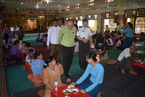 ချောက်မြို့နယ်တွင် အပူဒဏ်အန္တရာယ်ကာကွယ်ရေး အပူရှောင်စခန်းဖွင့်လှစ်မှုအား တာဝန်ရှိသူများက ကြည့်ရှုစစ်ဆေး