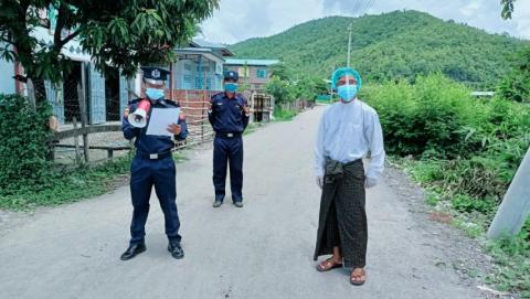 မင်းဘူးမြို့နယ်၌ ကိုဗစ်-၁၉ ကာကွယ်ရေးဆိုင်ရာ နည်းလမ်းများကို ပြည်သူများသိရှိလိုက်နာစေရန် အသံချဲ့စက်ဖြင့် လိုက်လံအသိပေးနှိုးဆော်