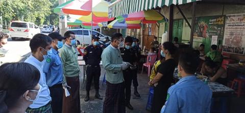 မြစ်ကြီးနားမြို့နယ်၌ စားသောက်ဆိုင်နှင့် လက်ဘက်ရည်ဆိုင်များတွင် ဆိုင်ထိုင် စားသောက်ခွင့် မပြုစေရန်နှင့် ပါဆယ်စနစ်ဖြင့်သာ ရောင်းချရေး အသိပေး