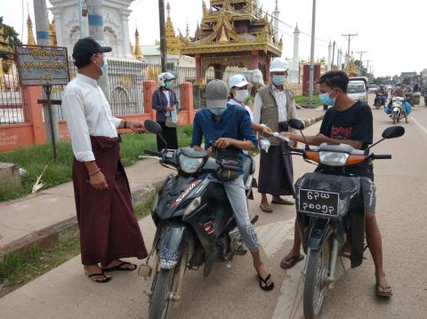 ပဲခူးတိုင်းဒေသကြီး၊ ပြည်ခရိုင်၊ ပန်းတောင်းမြို့နယ် ရွှေဘုံသာ၊ ဆင်တဲတွင် စားသောက်ဆိုင် များနှင့် လက်ဘက်ရည်ဆိုင်များအား ကိုဗစ်-၁၉ ရောဂါ ကူးစက်ပြန့်ပွားမှုမှ ကာကွယ်နိုင် ရေးအတွက် ကျန်းမာရေးနှင့်အားကစားဝန်ကြီးဌာန၏ ထုတ်ပြန်ထားသော သတ်မှတ် စည်းကမ်းချက်များနှင့်အညီ ရောင်းချရေး အသိပညာပေးစစ်ဆေးခြင်းကို ယမန်နေ့ နံနက်ပိုင်းက မြို့နယ်စည်ပင် သာယာရေးအဖွဲ့၊ မြို့နယ် လ.ဝ.က ဦးစီးဌာန၊ မီးသတ်ဦးစီးဌာန၊ ကျန်းမာရေးဦးစီးဌာန၊ ပြန်/ဆက်ဦးစီးဌာန၊ မြို့နယ်ရဲတပ်ဖွဲ့၊ ရပ်ကွက် အုပ်ချုပ်ရေးမှူးများနှင့် မြို့နယ်ကိုဗစ်-၁၉ ထိန်းချုပ်ရေးနှင့်အရေးပေါ်တုံ့ပြန်ရေးကော်မတီ၏ မြို့တွင်း လှည့်လည် စိစစ်ရေး ကော်မတီမှ တာဝန်ရှိသူများက ကွင်းဆင်စစ်ဆေး ဆောင်ရွက်ခဲ့ ကြောင်း သိရသည်။