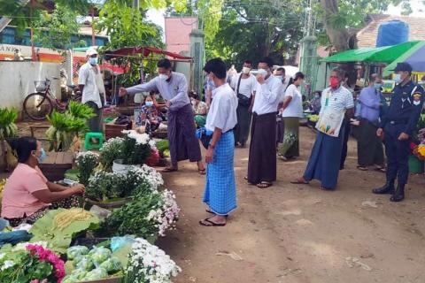 မကွေးတိုင်းဒေသကြီး သရက်မြို့နယ်ကိုဗစ်-၁၉ ထိန်းချုပ်ရေးနှင့် အရေးပေါ်တုံ့ပြန်ရေး ကော်မတီ ဥက္ကဋ္ဌနှင့် အဖွဲ့ဝင်များသည် ယနေ့နံနက် ၉ နာရီက စည်ပင်သာယာမြို့မဈေးအား ဇူလိုင်လ ၉ ရက်နေ့ မှစတင်၍ ရက်သတ္တတစ်ပတ် ပိတ်ထားနိုင်ရေးနှင့် ကိုဗစ်-၁၉ ရောဂါ ကာကွယ်ထိန်းချုပ်နိုင်ရေး အတွက် ဈေးရောင်း၊ ဈေးဝယ်များအနေဖြင့် ကျန်းမာရေးနှင့်အားကစားဝန်ကြီးဌာန၏ လမ်းညွှန်ချက်နှင့်အညီ လိုက်နာရန် အသိပညာပေးခြင်းများ ဆောင်ရွက်ခဲ့သည်။