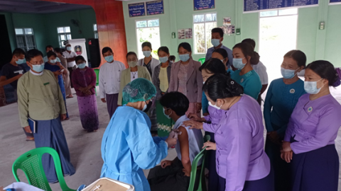 ကိုဗစ်-၁၉ တတိယလှိုင်းကာလ ရောဂါကူးစက်မှုများလျော့ကျလာစေရေးအတွက် ဌာနဆိုင်ရာများ ပူးပေါင်းပါဝင်သော ကိုဗစ်-၁၉ ရောဂါထိန်းချုပ်ရေး နှင့် အရေးပေါ် တုန့်ပြန်ရေး ကော်မတီများဖွဲ့စည်းပြီး တိုင်းဒေသကြီး၊ ပြည်နယ်နှင့်မြို့နယ်များ၊ ကျေးလက် ဒေသများပါမကျန် ကိုဗစ်-၁၉ ရောဂါကာကွယ်ဆေးများထိုးနှံဆောင်ရွက်ပေးလျက်ရှိရာ ရှမ်းပြည်နယ် (တောင်ပိုင်း) ဓနု ကိုယ်ပိုင်အုပ်ချုပ်ခွင့်ရဒေသခန်းမ၌ ယနေ့ နံနက် (၉)နာရီက ရဟန်း သံဃာ တော်များ၊ သက်ကြီးရွယ်အိုများ၊ အသက် (၁၈) နှစ်ပြည့်ပြီးသူများနှင့် ဌာနဆိုင်ရာ ဝန်ထမ်းများအား ကိုဗစ် -၁၉ ရောဂါကာကွယ်ဆေး ဒုတိယအကြိမ် ဒုတိယအသုတ်အား စတုထ္ထနေ့ အဖြစ်၊ ဆက်လက်ထိုးနှံဆောင်ရွက်ပေးလျက်ရှိသည်။