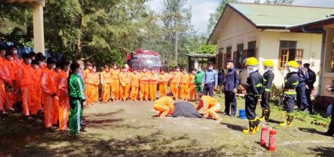 ရခိုင်ပြည်နယ် မောင်တောမြို့နယ်စပ်ဒေသ တိုင်းရင်းသားလူငယ်များ ဖွံ့ဖြိုးရေး သင်တန်းကျောင်း တွင် မီးဘေးအန္တရာယ် ကြိုတင်ကာ ကွယ်နိုင်ရေးအတွက် အသိပညာပေး သရုပ်ပြမှုများ ပြုလုပ်