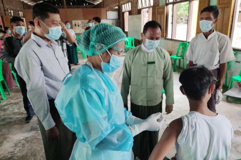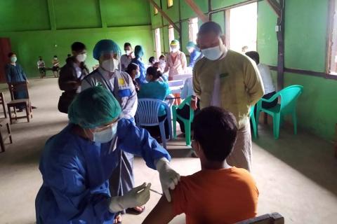 ကရင်ပြည်နယ်၊ ဖာပွန်ခရိုင်၊ ကမမောင်းမြို့အတွင်းရှိ အခြေခံပညာကျောင်းများမှ အသက်(၁၂)နှစ်နှင့်အထက် ကျောင်သား/ကျောင်းသူများအား ကိုဗစ်-၁၉ ရောဂါ ကာကွယ်ဆေး(Sinovac) ပထမအကြိမ်ထိုးနှံပေးခြင်းကို ယမန်နေ့နံနက် ၉ နာရီခွဲမှစတင်၍ ကျန်းမာရေးဌာနမှဝန်ထမ်းများက ထိုးနှံပေးခဲ့ကြောင်း သိရသည်။