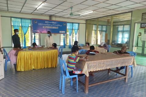 ပျော်ဘွယ်မြို့နယ်ရုံး Community Centre ခန်းမတွင်အခြေခံပညာမူလတန်းအဆင့် စကားပုံဆက်ပြိုင်ပွဲနှင့်ဆုချီးမြှင့်ပွဲကျင်းပ