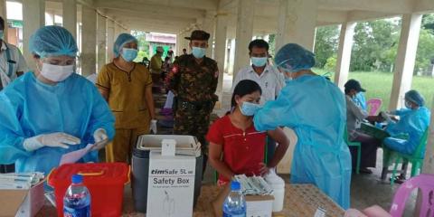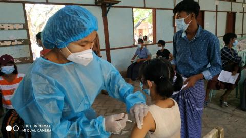 ရခိုင်ပြည်နယ်မြောက်ဦးခရိုင်၊ မြောက်ဦးမြို့နယ်အတွင်းရှိ မြို့ပေါ်ရပ်ကွက်များမှ အခြေခံပညာ အ-ထ-က(၁) ကျောင်းတွင် ပညာသင်ယူနေသော အလယ်တန်းအဆင့်နှင့် အထက်တန်းအဆင့် ကျောင်းသား/ကျောင်းသူများအား ကိုဗစ်-၁၉ ရောဂါကာကွယ်ဆေး ပထမအကြိမ်ထိုးနှံခြင်းအား ယနေ့ နံနက် ၈ နာရီအချိန်က မြို့နယ်အဆင့် ကိုဗစ်-၁၉ ရောဂါ ကာကွယ်ထိန်းချုပ်ရေးနှင့် အရေးပေါ်တုံ့ပြန်ရေးကော်မတီ၏ စီစဉ်ဆောင်ရွက်မှုဖြင့် မြို့နယ်ပြည်သူ့ကျန်းမာရေးဦးစီးဌာနမှ ကျန်းမာရေးဝန်ထမ်းများမှကိုဗစ်ကာကွယ်ဆေးများ ပထမအကြိမ်စတင်ထိုးနှံပေးလျက်ရှိကြောင်း သိရသည်။