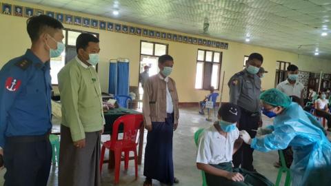 မကွေးတိုင်းဒေသကြီး ၊ ပခုက္ကူခရိုင် ၊ ပေါက်မြို့နယ်၌ မကွေးတိုင်းဒေသကြီးအစိုးရအဖွဲ့မှ ထုတ်ဝေသည့် ကိုဗစ်-၁၉ ရောဂါကာကွယ်ရေးပြည်သူအားလုံးပါဝင်ပေး”ဖန်ခါးမြေ လက်ကမ်း စာစောင် အတွဲ(၁) ၊ အမှတ်(၁) အခမဲ့ဖြန့်ဝေခြင်းကို အောက်တိုဘာလ ၁၈ ရက်နေ့ နံနက်(၉) နာရီအချိန်က အသက်(၁၂)နှစ်နှင့် အထက်ကျောင်း သား/ကျောင်း သူများအား ကိုဗစ်.၁၉ ရောဂါ ကာကွယ် ဆေးထိုးနှံသည့် စုရပ်များဖြစ်သော အ.ထ.က ပေါက် ၊ အ.ထ.ကရေပြာနှင့် အ.ထ.က ချောင်းကူး ကျောင်းများ၌ ကာကွယ်ဆေး လာရောက်ထိုးနှံကြသည့် ကျောင်းသား/ကျောင်း သူများနှင့် မိဘပြည်သူများထံ မြို့နယ်ကိုဗစ်-၁၉ရောဂါထိန်းချုပ်ရေးနှင့် အရေးပေါ်တုန့်ပြန်ရေး ကော်မတီဝင်များ အခမဲ့ဖြန့်ဝေ ဆောင်ရွက်ခဲ့ကြောင်းသိရသည်။