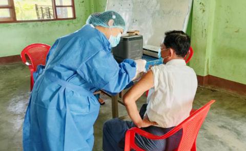 ရခိုင်ပြည်နယ် မောင်တောမြို့၌ နိုင်ငံဝန်ထမ်းများနှင့် ဦးတည်အုပ်စုတွင် ပါဝင်သူများအား ဒုတိယအသုတ် (ဒုတိယ)အကြိမ်အဖြစ် ကိုဗစ်-၁၉ ကာကွယ်ဆေး ဆက်လက်ထိုးနှံပေး