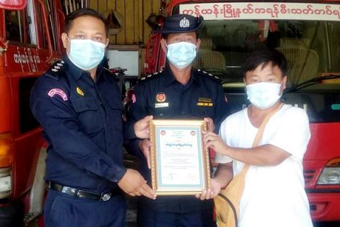 အလုံမြို့နယ် အရန်မီးသတ်တပ်ဖွဲ့ဝင်များအား အလှူငွေများ ထောက်ပံ့လှူဒါန်း