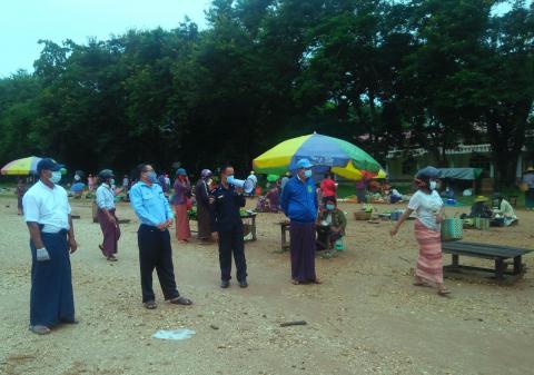 ဧရာဝတီတိုင်းဒေသကြီး၊ မအူပင်ခရိုင်၊ ပန်းတနော်မြို့နယ်တွင် ကိုဗစ်-၁၉ရောဂါ ကူးစက်ပြန့်ပွားမှု မရှိစေရေး မြို့မ စည်ပင်သာယာဈေးများနှင့် မြို့နယ်အတွင်းရှိဈေးဆိုင်များ၊ ဆိုင်ခန်းများအား မြို့နယ်အဆင့် ကိုဗစ်-၁၉ရောဂါ ထိန်းချုပ်ရေးနှင့် အရေးပေါ်တုံ့ပြန်ရေး ကော်မတီအဖွဲ့က ညွှန်ကြားချက်များအတိုင်း ဖွင့်လှစ်ရောင်းချခြင်းရှိ/ မရှိကို ယနေ့ နံနက် ၁၀ နာရီ၌ လိုက်လံစစ်ဆေး ခဲ့သည်။