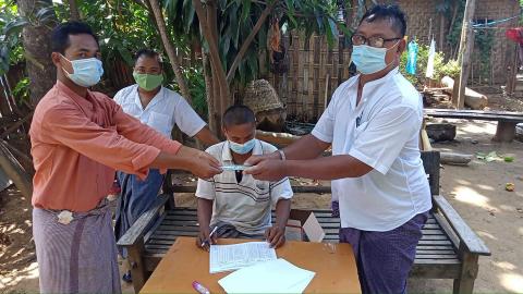 မုံးကိုးမြို့၌ နှာခေါင်းစည်းမတပ်ဆင်ဘဲ ပြင်ပသွားလာသူများအား အခုဝယ်၊ အခုတပ်စနစ်ဖြင့် စစ်ဆေးဆောင်ရွက်