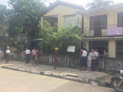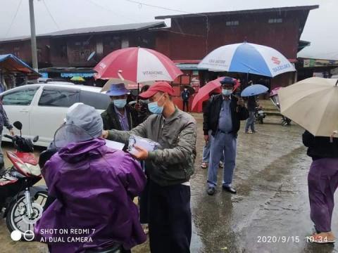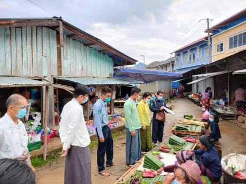 မိုင်းယောင်းမြို့မဈေးအတွင်း ကိုဗစ်-၁၉ ရောဂါ ကြိုတင်ကာကွယ်ရေးအတွက် နှာခေါင်းစည်း (Mask) တပ်ဆင်ရေးစစ်ဆေး