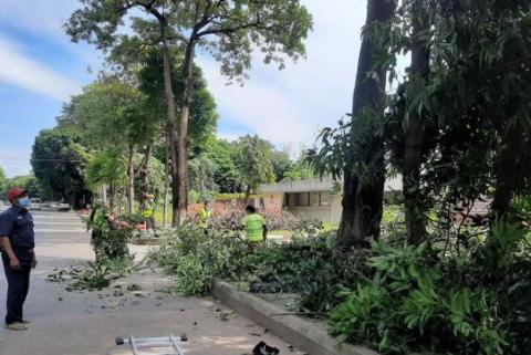 ဒဂုံမြို့နယ် မြို့မကျောင်းလမ်းမကြီးတစ်လျှောက် လျှပ်စစ်ဓါတ်အားလိုင်းကြိုးနှင့် မလွတ်ကင်းသောသစ်ကိုင်းများ ခုတ်ထွင်ရှင်းလင်း