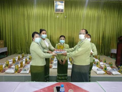 ရန်ကုန်အရှေ့ပိုင်းခရိုင်၊ မင်္ဂလာတောင်ညွန့်မြို့နယ် အထွေထွေအုပ်ချုပ်ရေးဦးစီးဌာနမှ ဌာနအတွင်းရှိ ဝန်ထမ်း (၄၉) ဦးအတွက် အခြေခံစားသောက်ကုန်များနှင့် Mask များ ထောက်ပံ့ပေးအပ်ပွဲကို ယမန်နေ့နံနက် ၁၀ နာရီ အချိန်က မြို့နယ်အထွေထွေအုပ်ချုပ်ရေး ဦးစီးဌာန၏ အစည်းအဝေးခန်းမ၌ ကျင်းပပြုလုပ်ခဲ့သည်။