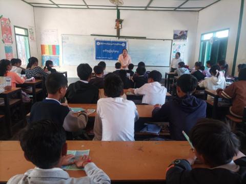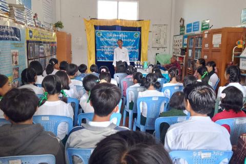 မိုင်းပန်မြို့နယ် အခြေခံပညာကျောင်းများ၌ (၇၈)နှစ်မြောက် ပြည်ထောင်စုနေ့အထိမ်းအမှတ်အကြိုဟောပြောပွဲနှင့် သတင်းစကား လက်ကမ်းစာစောင်များဖြန့်ဝေ