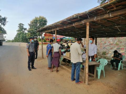 COVID-19 ရောဂါ ကြိုတင်ကာကွယ်ရေး မြို့အဝင်ဂိတ်ဖွင့်လှစ်ပြီး ခရီသွားပြည်သူများအား နေ့စဉ်စစ်ဆေးလျက်ရှိ