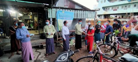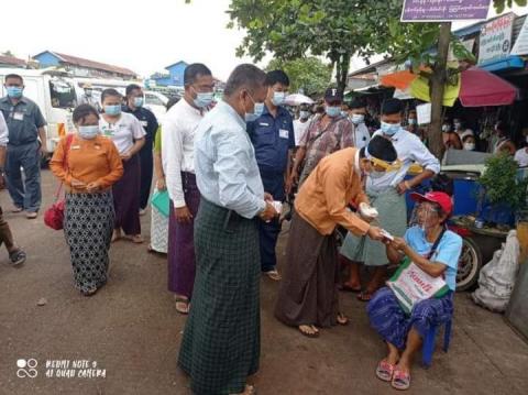 ပြည်သူများ ကိုဗစ်-၁၉ ရောဂါမှ ကာကွယ်နိုင်ရန်နှင့် ရောဂါပျံ့ပွားမှုမရှိစေရေးအတွက် ရန်ကုန်အနောက်ပိုင်းခရိုင် မရမ်းကုန်းမြို့နယ်တွင် ယမန်နေ့မွန်းလွဲ ၃ နာရီက မြို့နယ်ကိုဗစ်-၁၉ ကာကွယ် ထိန်းချုပ်ရေးနှင့် အရေပေါ်တုံ့ပြန်ရေး ကော်မတီသို့ မြို့နယ်အတွင်း အသုံးပြုနိုင်ရန် နှာခေါင်းစည်း အခုရေတစ်သောင်း လာရောက်လှူဒါန်းခဲ့သည်။