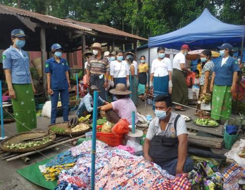 ဓနုဖြူမြို့မဈေးအတွင်း ကိုဗစ်-၁၉ ရောဂါ ကြိုတင်ကာကွယ်ရေးလုပ်ငန်းများ ဆောင်ရွက်