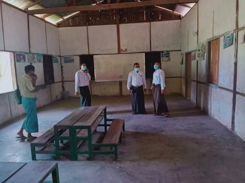 တောင်တွင်းကြီးမြို့နယ်တွင် Community Base Facility Quarantine Centre အဖြစ်ထားရှိမည့် ညောင်ပင်လှကျေးရွာ မူလတန်းလွန်ကျောင်းအား ကြည့်ရှုစစ်ဆေး