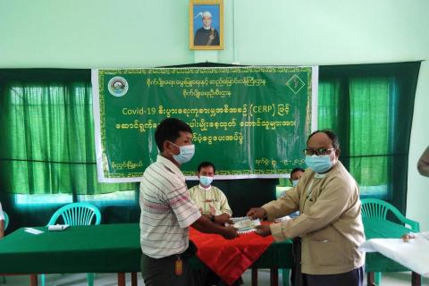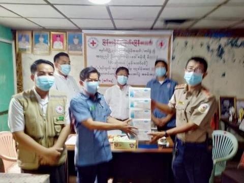 ရန်ကုန်မြောက်ပိုင်းခရိုင်အတွင်းရှိ မြို့နယ်ကြက်ခြေနီတပ်ဖွဲ့များသို့ နှာခေါင်းစည်းများနှင့် တစ်ခါသုံးလက်အိတ် များလှူဒါန်း