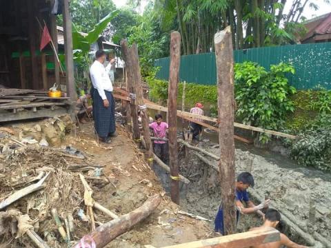 အင်းစိန်မြို့နယ်၊ ကသွယ်ချောင်း မြေထိန်းနံရံ တည်ဆောက်နေမှုအား တာဝန်ရှိသူများ ကွင်းဆင်း စစ်ဆေး
