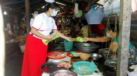 ရန်ကုန်တိုင်းဒေသကြီး၊ မြောက်ပိုင်းခရိုင်၊မှော်ဘီမြို့ နယ်စည်ပင်သာယာရေးအဖွဲ့၏ ကြီးကြပ်မှု အောက်တွင် ရှိသည့် မြောင်းတကာကျေးရွာစျေးတွင် စျေးရောင်း၊ စျေးဝယ်ပြည်သူများ ကိုဗစ်-၁၉ရောဂါ ကူးစက်မှု မဖြစ် ပေါ်စေရန်အတွက် အသိပညာပေးခြင်းများကို ယမန်နေ့ မွန်းလွဲပိုင်း က ပြုလုပ်ခဲ့သည်။