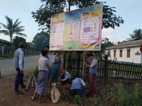 ပဲခူးတိုင်းဒေသကြီး ဘေးအန္တရာယ်ဆိုင်ရာစီမံခန့်ခွဲမှုဦးစီးဌာနမှ တောင်ငူခရိုင်အတွင်း ကိုဗစ်-၁၉ ရောဂါ အသိပညာပေး ဆိုင်းဘုတ်များစိုက်ထူပေး