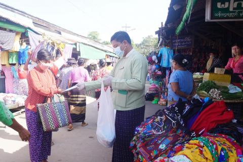 စစ်ကိုင်းတိုင်းဒေသကြီး၊ ကောလင်းမြို့၌ ကိုဗစ်-၁၉ ရောဂါ ကူးစက်မှုကာကွယ်ထိန်းချုပ်ရေးအတွက် ယနေ့နံနက်ပိုင်းက ဗိုလ်ချုပ်ပန်းခြံထောင့် ရွှေမင်းဝံလမ်းမကြီးတစ်လျှောက်နှင့် လူအများသွားလာရာ မြို့မစျေးထောင့် လမ်းမကြီးတစ်လျှောက် ဖြတ်သန်းသွားလာနေသည့် ကုန်တင်ယာဉ်များ၊ ခရီးသည် ယာဉ်များနှင့် အိမ်သုံးယာဉ်များတွင် လိုက်ပါစီးနှင်းသည့် ခရီးသွားပြည်သူများအား ကိုဗစ်-၁၉ ရောဂါ ကာကွယ်နိုင်ရေး နှာခေါင်းစည်းများ စနစ်တကျ တပ်ဆင်အသုံးပြုကြစေရန် အသိပညာပေးခြင်းလုပ်ငန်းကို အရှိန်အဟုန်မြှင့် ဆောင်ရွက်လျက်ရှိကြောင်း သိရသည်။