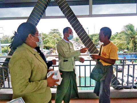 သန်လျင်၌ ကိုဗစ်-၁၉ ကြိုတင်ကာကွယ်ရေး နှာခေါင်းစည်းများ အခမဲ့ဖြန့်ဝေ