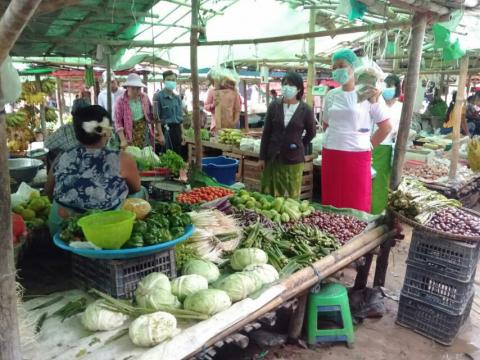 ကဝမြို့နယ် စည်ပင်သာယာရေးဈေးအတွင်း ကိုဗစ်-၁၉ရောဂါ ကြိုတင်ကာကွယ်ရေး သတ်မှတ် စည်းကမ်းချက်များနှင့်အညီ ဖွင့်လှစ်ရောင်းချရန်နှင့် Mask တပ်ဆင်ရန် စစ်ဆေး