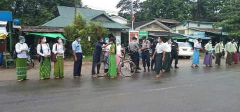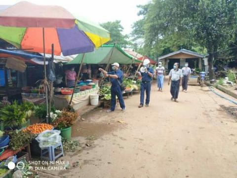 မှော်ဘီမြို့နယ်တွင် ကိုဗစ်-၁၉ ရောဂါကြိုတင်ကာကွယ်ရေး အသိပညာပေး နှိုးဆော်ချက်များအား စျေးများ၌ လှည့်လည် ကြေညာ