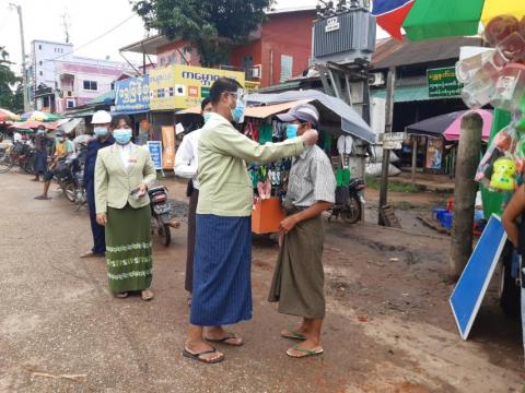 တိုက်ကြီးမြို့နယ်တွင် ကိုဗစ်-၁၉ ရောဂါကြိုတင်ကာကွယ် ထိန်းချုပ်နိုင်ရေး အသိပညာပေးခြင်းနှင့် ပါးစပ်၊ နှာခေါင်းစည်း(Mask)များ အခမဲ့ဖြန့်ဝေ