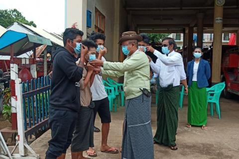 ကျိုက်ထိုမြို့နယ်၌ ကိုဗစ်-၁၉ ရောဂါ တားဆီးကာကွယ်ရေး Mask မတပ်ဆင်သူများကို အသိပညာပေးပြီး အခမဲ့ဝေငှတပ်ဆင်မှုများပြုလုပ်