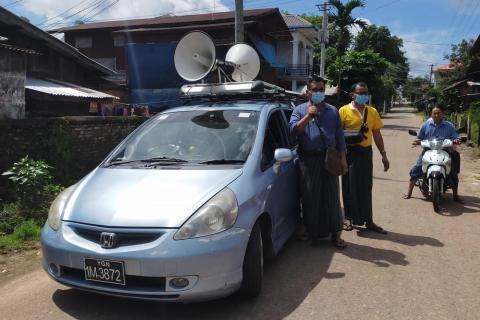 မွန်ပြည်နယ်၊ ရေးမြို့နယ်၊ လမိုင်းမြို့တွင် COVID-19 ရောဂါ ထိန်းချုပ် ကာကွယ်နိုင်ရန်အတွက် နေအိမ်ပြင်ပထွက်ခွာလျှင် နှာခေါင်းစည်း စနစ်တကျ တပ်ဆင်အသုံးပြုရန် လိုက်လံအသိပေးနှိုးဆော်ရေးကို မြို့မ(၂)၊ မြို့မ(၃) အုပ်ချုပ်ရေးမှူးတို့က ယနေ့ နံနက် ၁၁ နာရီ မှ စတင်ကာ မြို့ပတ်၍ လိုက်လံ အသိပေး နှိုးဆော်ခဲ့သည်။