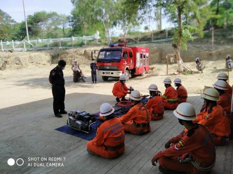 ချောက်မြို့နယ် မီးသတ်ဦးစီးဌာနတွင် ရှာဖွေကယ်ဆယ်ရေးတပ်ဖွဲ့ဝင်များအား ရှာဖွေ ကယ်ဆယ်ရေးနှင့် မီးငြိမ်းသတ်ရေးလေ့ကျင့်ခန်းများ နေ့စဉ်လေ့ကျင့် သင်ကြားပေး
