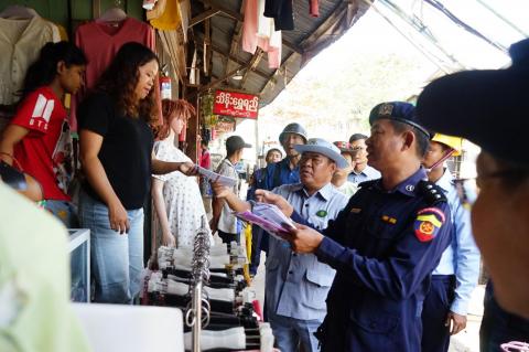 ဘိုကလေးမြို့နယ်၏ စည်ပင်သာယာရေးအဖွဲ့ပိုင်ဈေးများအတွင်း မီးဘေးလုံခြုံရေး အသိပညာပေး