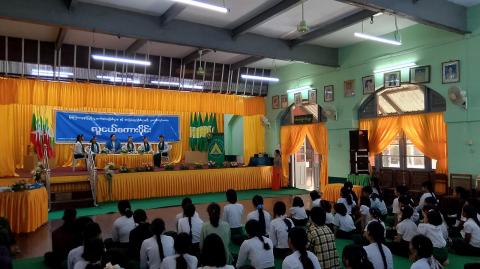 မွန်ပြည်နယ်အတွင်း သန့်ရှင်း၍ စိမ်းလန်းစိုပြည်သော အခြေခံပညာစာသင်ကျောင်းများအား ဖော်ဆောင်ပြီး ကျောင်းသူ၊ ကျောင်းသားများ စိတ်အေးချမ်းမြေ့စွာ ပညာသင်ကြားနိုင်ရေးအတွက် အလေးထားဆောင်ရွက်လျက်ရှိရာ မွန်ပြည်နယ်ဝန်ကြီးချုပ် ဦးအောင်ကြည်သိန်း၊ ပြည်နယ်ဝန်ကြီးများနှင့် တာဝန်ရှိသူများသည် ယမန်နေ့နံနက်ပိုင်းက မော်လမြိုင် မြို့၊ အမှတ် (၁၂) အခြေခံပညာ အထက်တန်းကျောင်း (မြိုင်သာယာ)၌ ကျောင်းဝင်းအတွင်းနှင့် ဘေးပတ်ဝန်းကျင်ရှိ ခြုံနွယ်များ၊ မြက်များ၊ အမှိုက်များအား ဌာနဆိုင်ရာများ၊ မြန်မာနိုင်ငံရဲတပ်ဖွဲ့၊ မီးသတ်တပ်ဖွဲ့ဝင်များ၊ လူမှုရေးအသင်းအဖွဲ့များ၊ ရပ်ကွက်နေပြည်သူများက စာသင်ကျောင်း စိမ်းလန်းစိုပြည်ရေးနှင့် သန့်ရှင်း သာယာလှပရေးအတွက် ကျောင်းအကျိုးပြု စုပေါင်းသန့်ရှင်းရေး ဝိုင်းဝန်းဆောင်ရွက်ပေးနေမှုအပေါ် ကြည့်ရှုအားပေးခဲ့သည်။