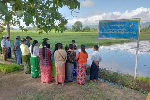 မောက်မယ်မြို့နယ်၌ (၆) တန်းသွား လက်ဆွဲမျိုးစေ့ချကိရိယာ (Drum Seeder) ဖြင့် မိုးစပါးစိုက်ပျိုးသရုပ်ပြ