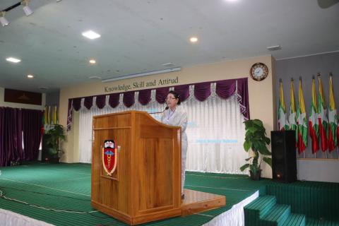 ဆေးတက္ကသိုလ် (တောင်ကြီး) တွင် “ကျန်းမာရေးဝန်ထမ်းအချင်းချင်း အပြန်အလှန်သင်ယူခြင်းအား လက်တွေ့အကောင်အထည်ဖော်ဆောင်ရွက်ခြင်း” (Practical Implementation of Inter-professional Education in Taunggyi IPE Zone)” အလုပ်ရုံဆွေးနွေးပွဲ ဖွင့်ပွဲအခမ်းအနားကို ယမန်နေ့ နံနက် ၈ နာရီခွဲက ဆေးတက္ကသိုလ်(တောင်ကြီး) Cherry Blossom Ballroom ခန်းမ၌ ကျင်းပသည်။