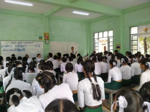 ရှမ်းပြည်နယ်တောင်ပိုင်း၊ နမ့်စန်မြို့နယ်တွင် စက်တင်ဘာလ(၇)ရက်နေ့၌ ကျရောက်မည့် အပြည်ပြည်ဆိုင်ရာသန့်ရှင်းလေထုနေ့ (International Day of Clean Air For Blue Skies) အထိမ်းအမှတ် အသိပညာပေးဟောပြောပွဲကို ယနေ့နံနက် ၁၀ နာရီက အမှတ်(၂)ရပ်ကွက်ရှိ အခြေခံပညာအထက်တန်းကျောင်း(နမ့်စန်) သရဖီခန်းမတွင် ကျင်းပခဲ့ရာ ကျောင်းအုပ်ဆရာမကြီး ဒေါ်မွန်မွန်မြင့်နှင့် ဆရာ/ဆရာမများ၊ အလယ်တန်းနှင့်အထက်တန်းအဆင့် ကျောင်းသား၊ ကျောင်းသူများ၊ စုစုပေါင်း ၂၃၀ ဦးခန့် တက်ရောက်ခဲ့ကြသည်။
